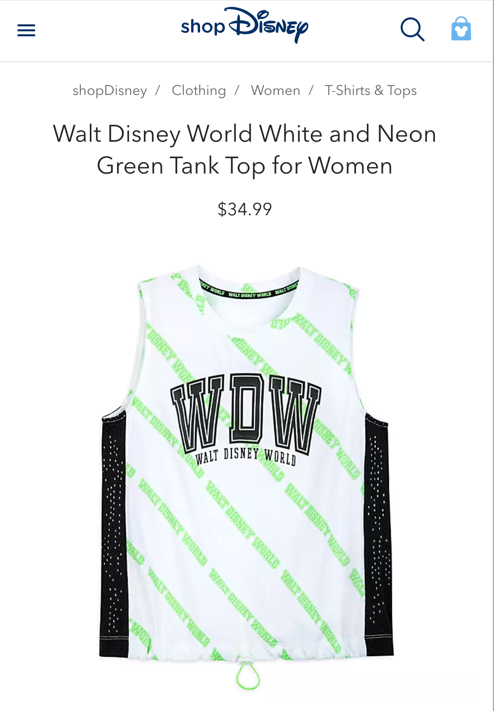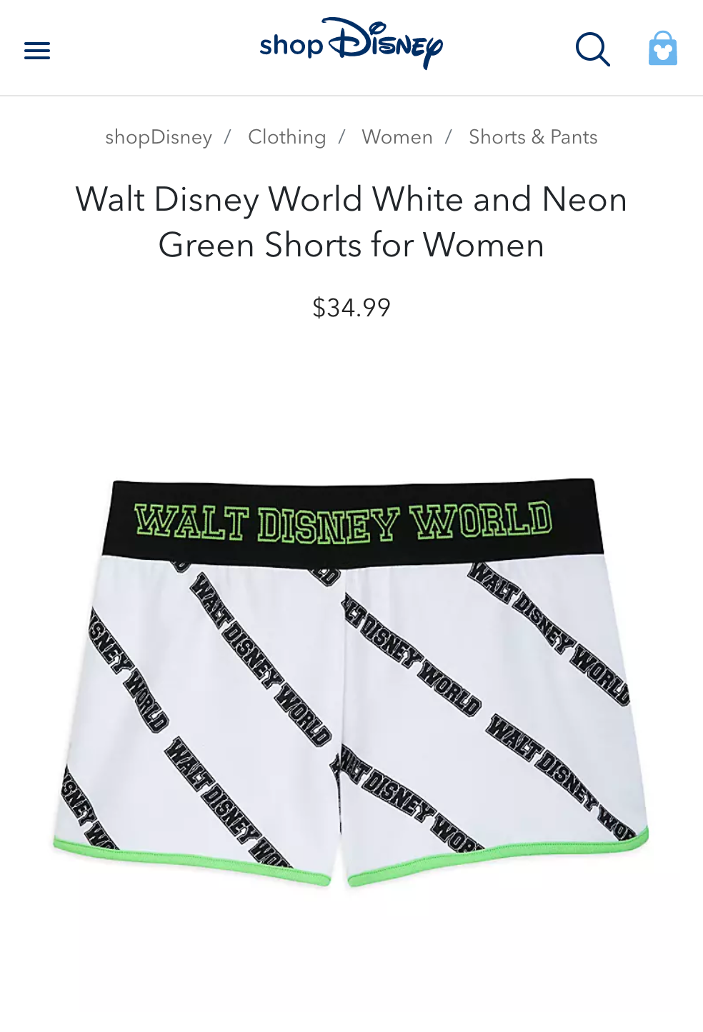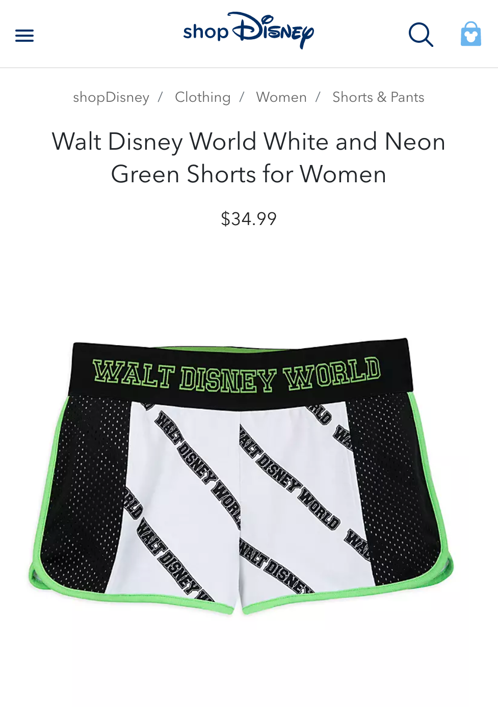 Screenshots from eComm website shopdisney.com