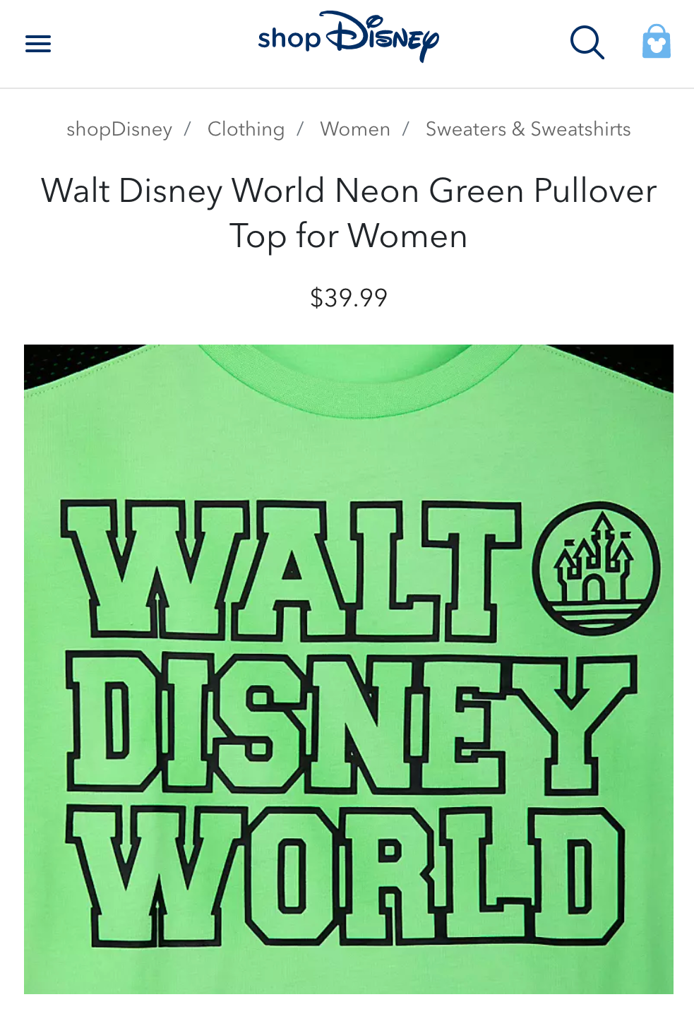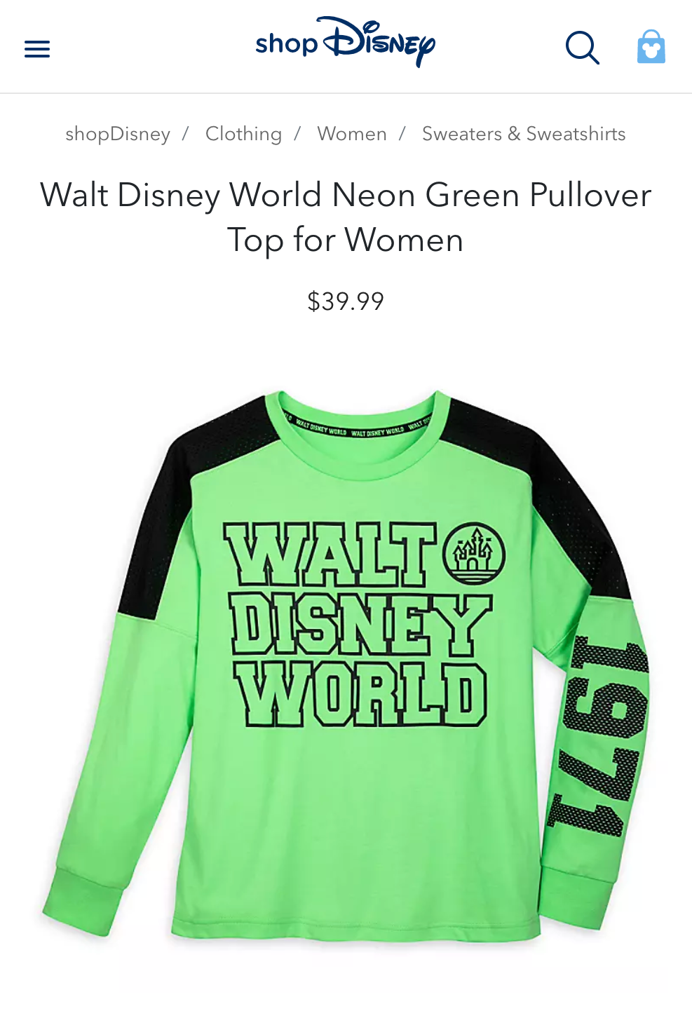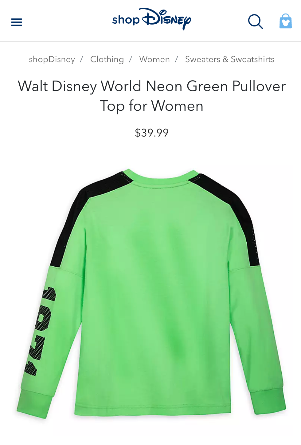 Screenshots from eComm website shopdisney.com