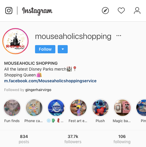 Promoted on Instagram by @mouseaholicshopping with 37,700 followers.